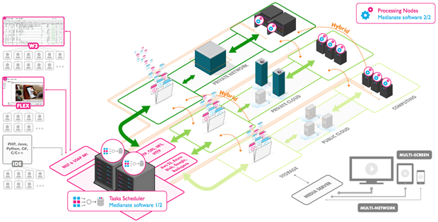 At the front of software-defined-video (SDV) processing technologies state-of-art, Medianate is a large scale triple video processing platform for :